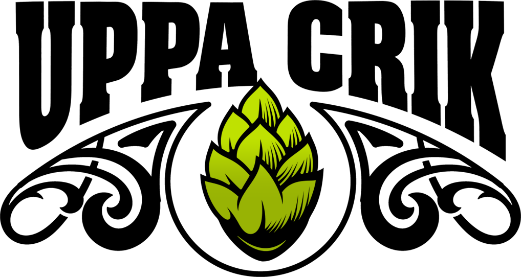 Apparel, growlers, and more featuring our signature "Uppa Crik" branding.